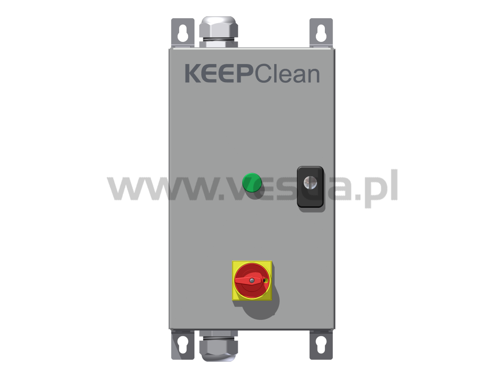 Obudowa posiada pojedynczy króciec do podłączenia sprężonego powietrza, dławiki do kabli zasilających i sygnalizacyjnych, diodę LED stanu systemu.