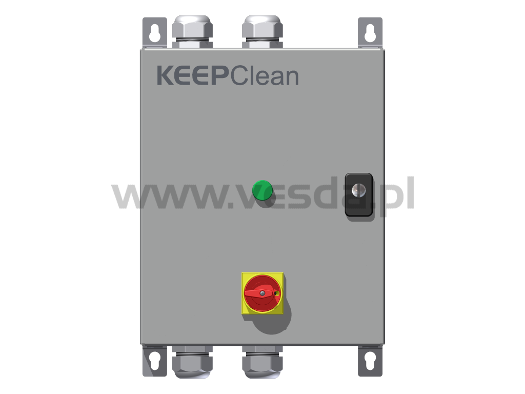 Obudowa posiada pojedynczy króciec do podłączenia sprężonego powietrza, dławiki do kabli zasilających i sygnalizacyjnych, diodę LED stanu systemu.