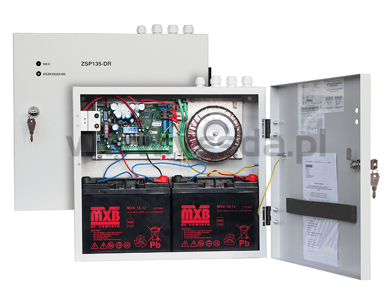 Do poprawnej pracy zasilacza ZSP135 wymagane jest zastosowanie dwóch akumulatorów MXV 18-12 o pojemności odpowiedniej dla danego typu zasilacza.