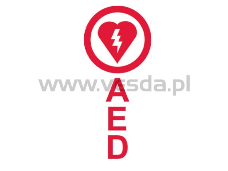 Dwie etykiety AED umieszczone na bokach szaf serii STI-753XAED (po jednej na każdą stronę).