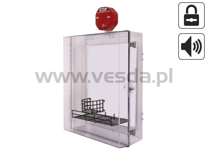 Duża szafka ochronna dla defibrylatora AED z blokadą i syreną